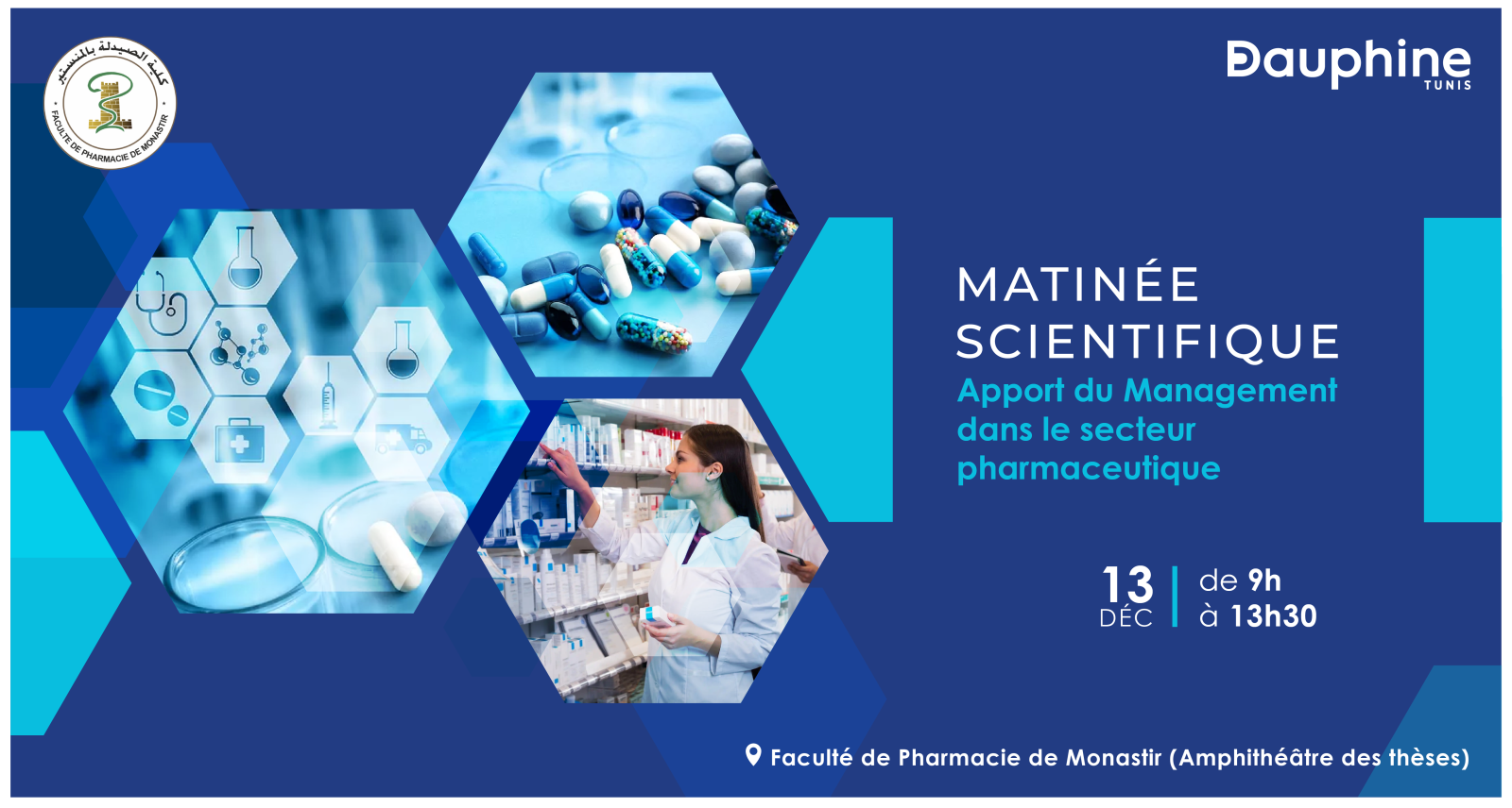 We are pleased to invite you to the scientific seminar “The Contribution of Management in the Pharmaceutical Sector”, co-organized by the Faculty of Pharmacy of Monastir and Dauphine University Tunis.