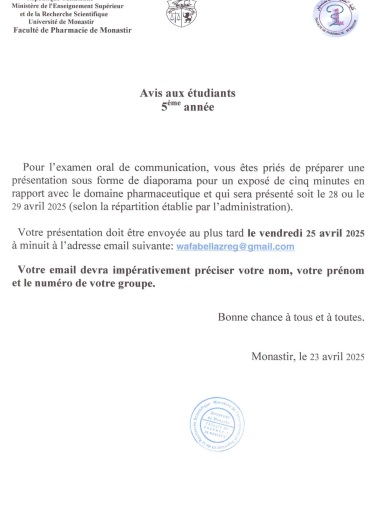 NOTE AUX ETUDIANTS 5 -EME ANNEE _ Modifiée