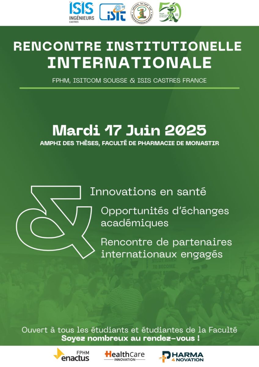 Faculté de Pharmacie de Monastir a l’immense plaisir de vous convier à une rencontre institutionnelle d’exception avec l’