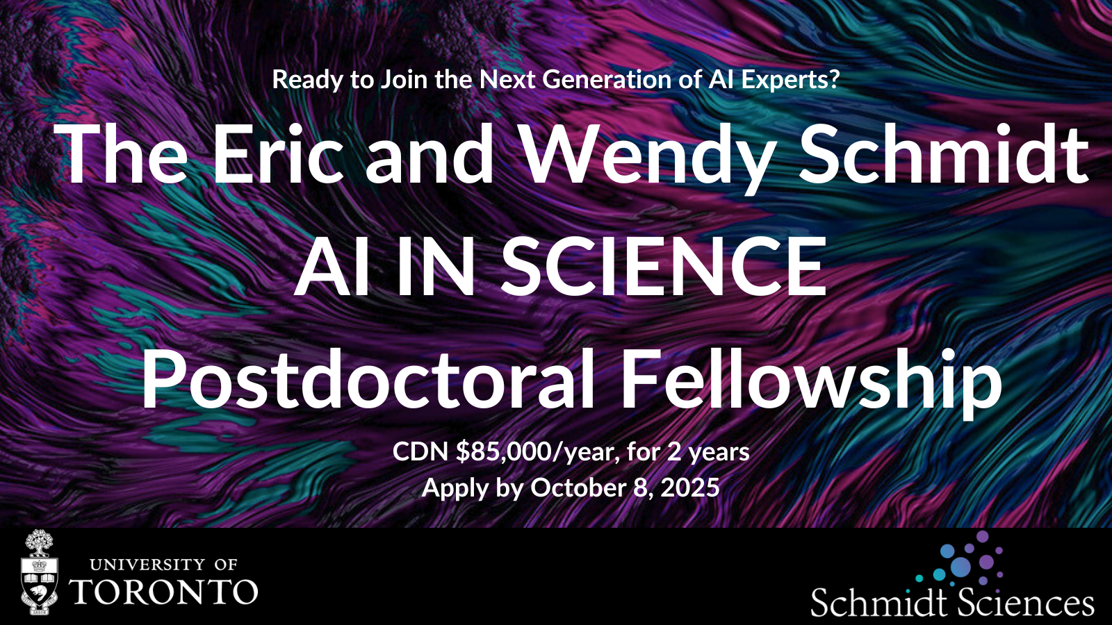 The University of Toronto is pleased to announce its fourth call for proposals for the Eric and Wendy Schmidt AI in Science Postdoctoral Fellowship Program! This represents a fantastic opportunity for existing and prospective natural sciences/engineering postdocs who have a desire to learn new AI methodologies that stand to accelerate discoveries in their domain.