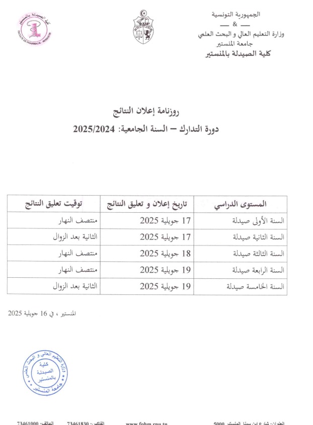 رزنامة اعلان النتائج دورة التدارك 2024 2025