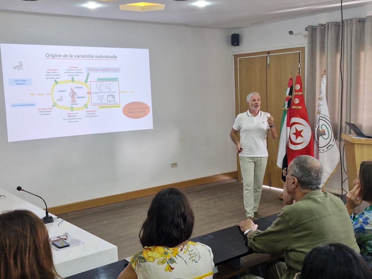 Dr. Jean Christophe Boyer du CHU de Nime, membre du réseau francophone de pharmacogénétique a parlé d'actualités en pharmacogénétique des anticancéreux, pour un public de doctorants, d'étudiants au M2 "Développement des médicaments" et de résidents inscrits au CES de pharmacologie.